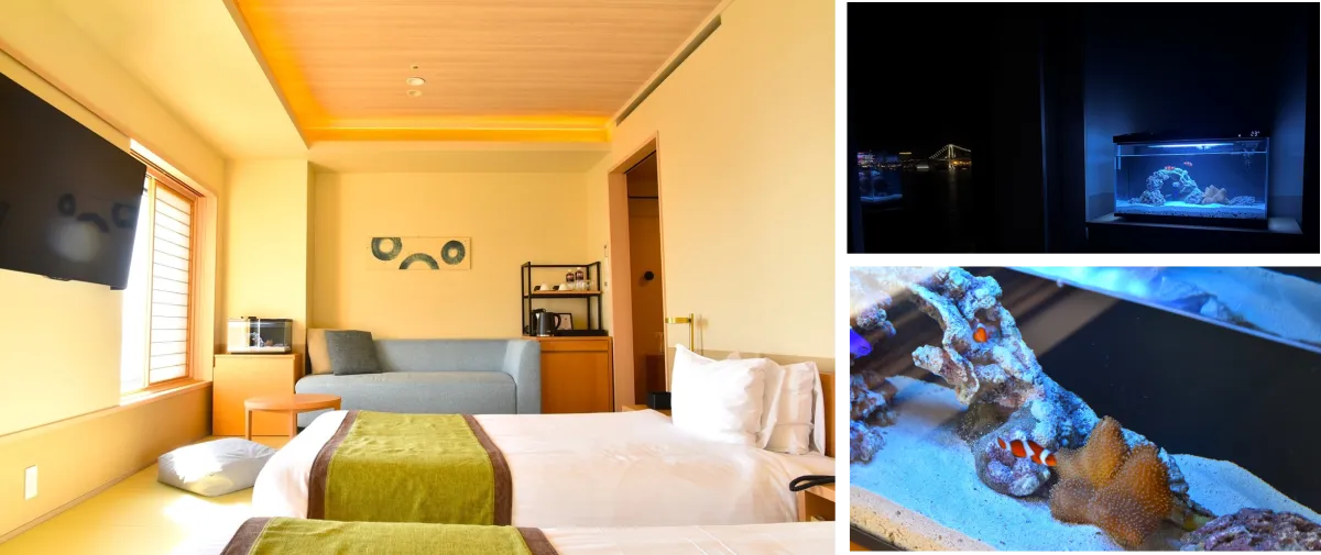 『Biorium』は、ホテル、病院、介護施設、企業、学校など、癒しの空間を必要とする幅広い施設で導入が進められています。特に、東京のベイサイドホテル「アジュール竹芝」では、アクア・ジャパニーズ・ラグジュアリーと題した水槽付き客室が新設されています。この試みは、ホテルの宿泊客に新しいリラックス体験を提供することを目的としており、心地よい水の流れがもたらす癒しは今までにない新たな宿泊体験となるでしょう。