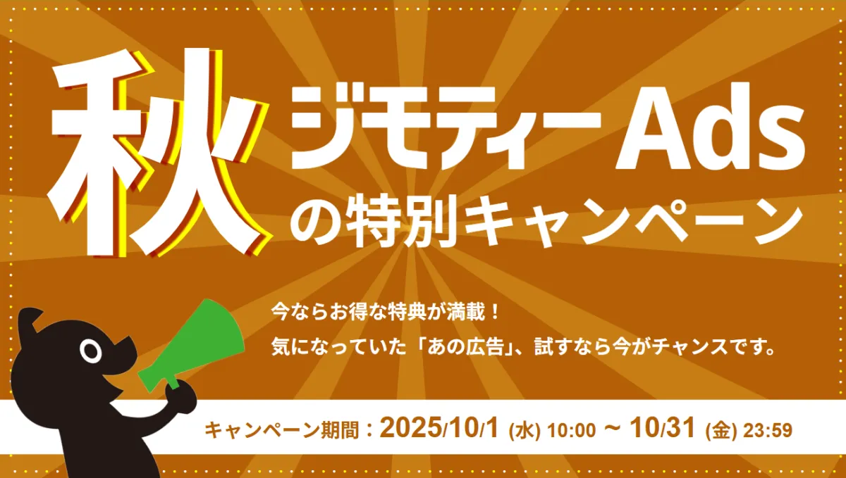 地域の情報サイト『ジモティー』を運営する株式会社ジモティーが、運用型広告配信プラットフォーム『ジモティーAds』にて、企業向けの広告出稿をサポートする「秋の新規出稿応援キャンペーン」を2025年10月1日から開始します。このキャンペーンは、新たにジモティーAdsを利用する企業様に特化しており、最大50,000円分の広告クレジットを提供します。