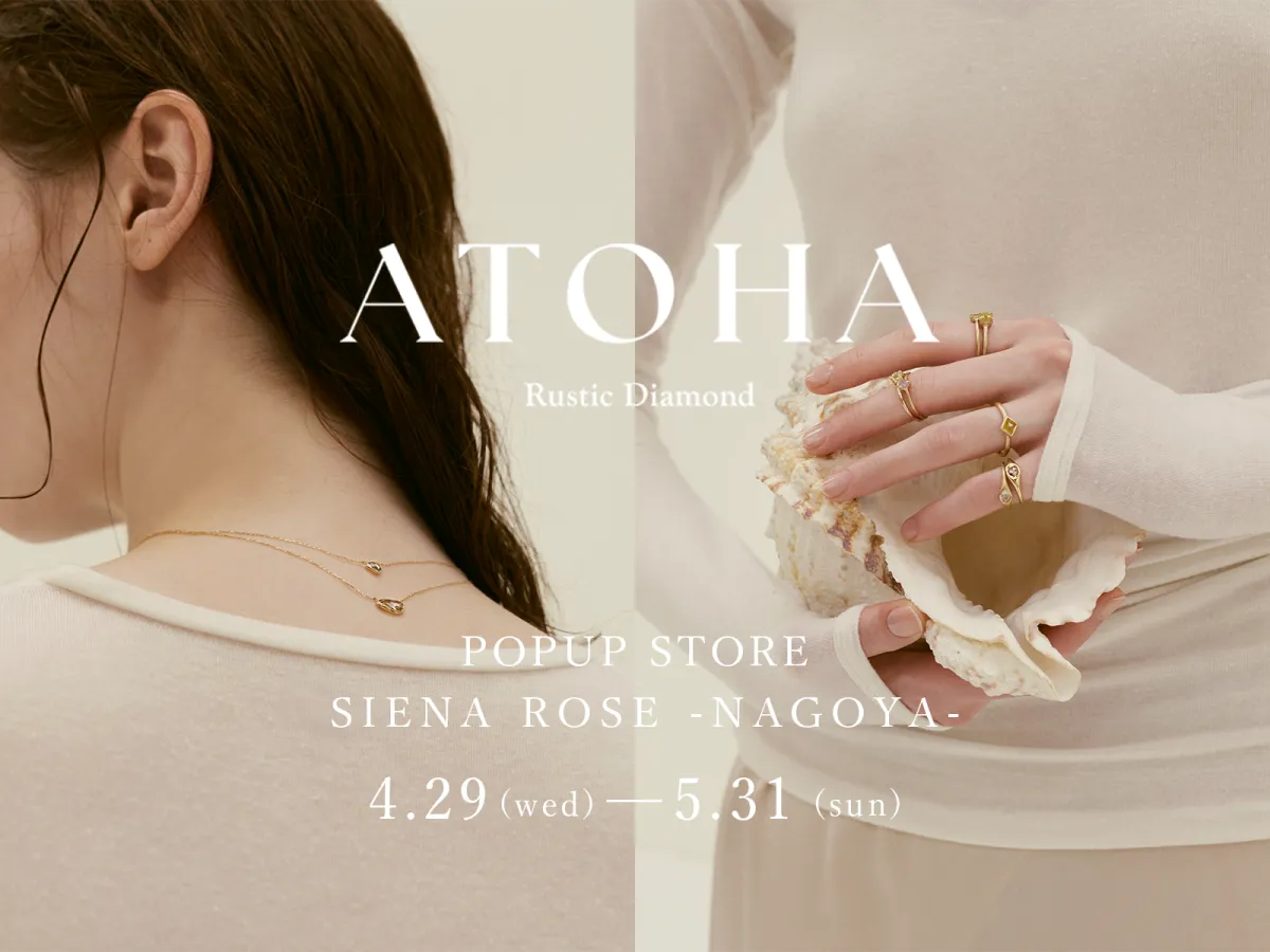 自然の中で育まれた唯一無二の美しさを持つダイヤモンド。これを形にし、ひとつのジュエリーとして生まれ変わらせるのが、ナチュラルダイヤモンドジュエリーブランド「ATOHA」です。このたび、ATOHAが名古屋でPOPUPイベントを開催することが決まりました。この特別な機会に、もっと深くこのブランドの魅力を知っていただきたいと思います。