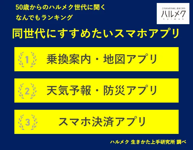 株式会社ハルメク・エイジマーケティングが実施した調査により、50歳以上の女性たちが推薦するスマホアプリが明らかになりました。具体的には、524名の事前調査を経て498名の回答をもとに、「同世代にすすめたいスマホアプリ」をテーマにしたランキングが公開されました。