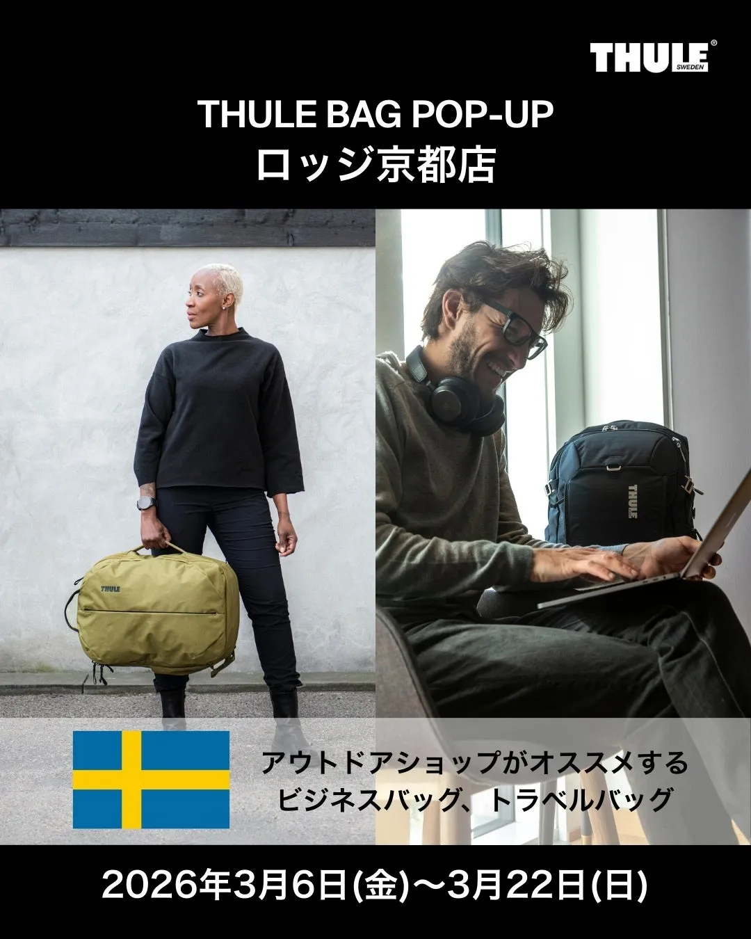 2026年3月6日から3月22日まで、スウェーデン発の人気ブランド『THULE』が京都ロッジにて特別なポップアップイベントを開催します。アウトドアやビジネスシーンで活躍するバッグが充実したラインナップで登場し、多くの訪問者を迎え入れることでしょう。
