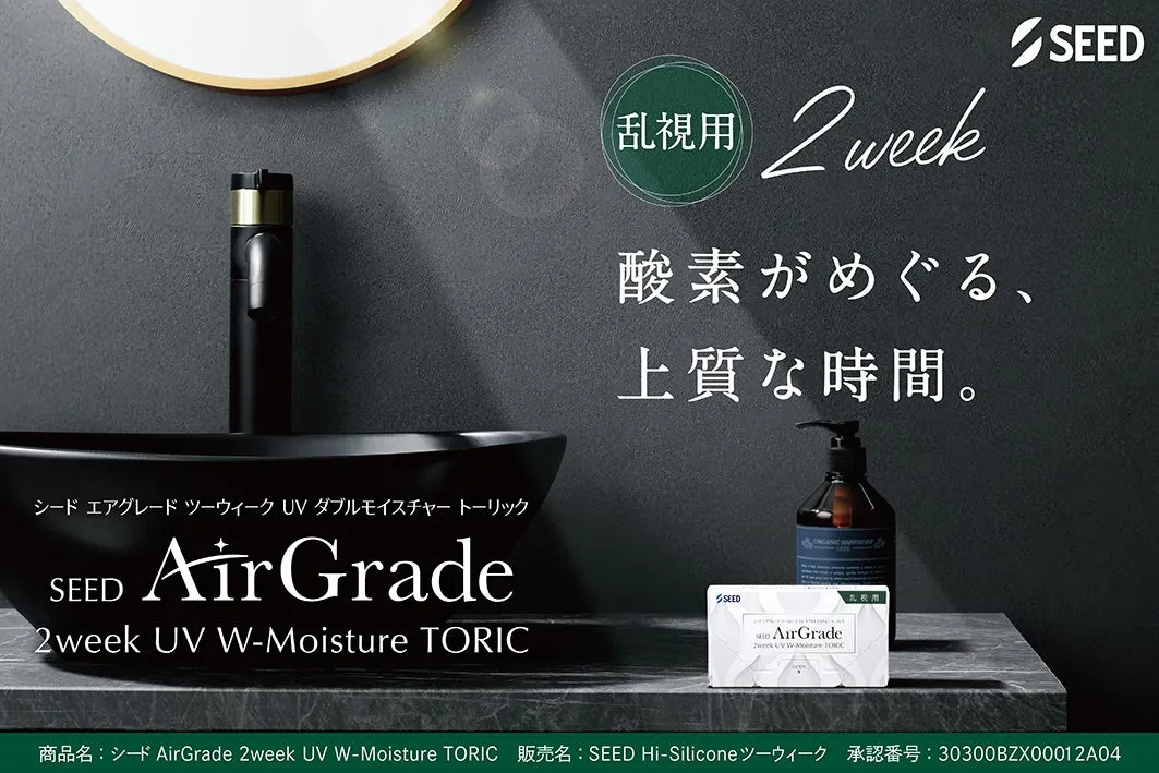 「シード AirGrade 2week UV W-Moisture TORIC」は、機能性、快適性、デザイン性を追求した次世代の乱視用コンタクトレンズ。眼に優しく、快適な装用体験を提供するために、多くの技術が結集されています。コンタクトレンズを愛用する方々には、ぜひ試してみてほしい一品です。シードのこだわりが詰まったこのレンズで、日常の視界をより明瞭にしてみてはいかがでしょうか。