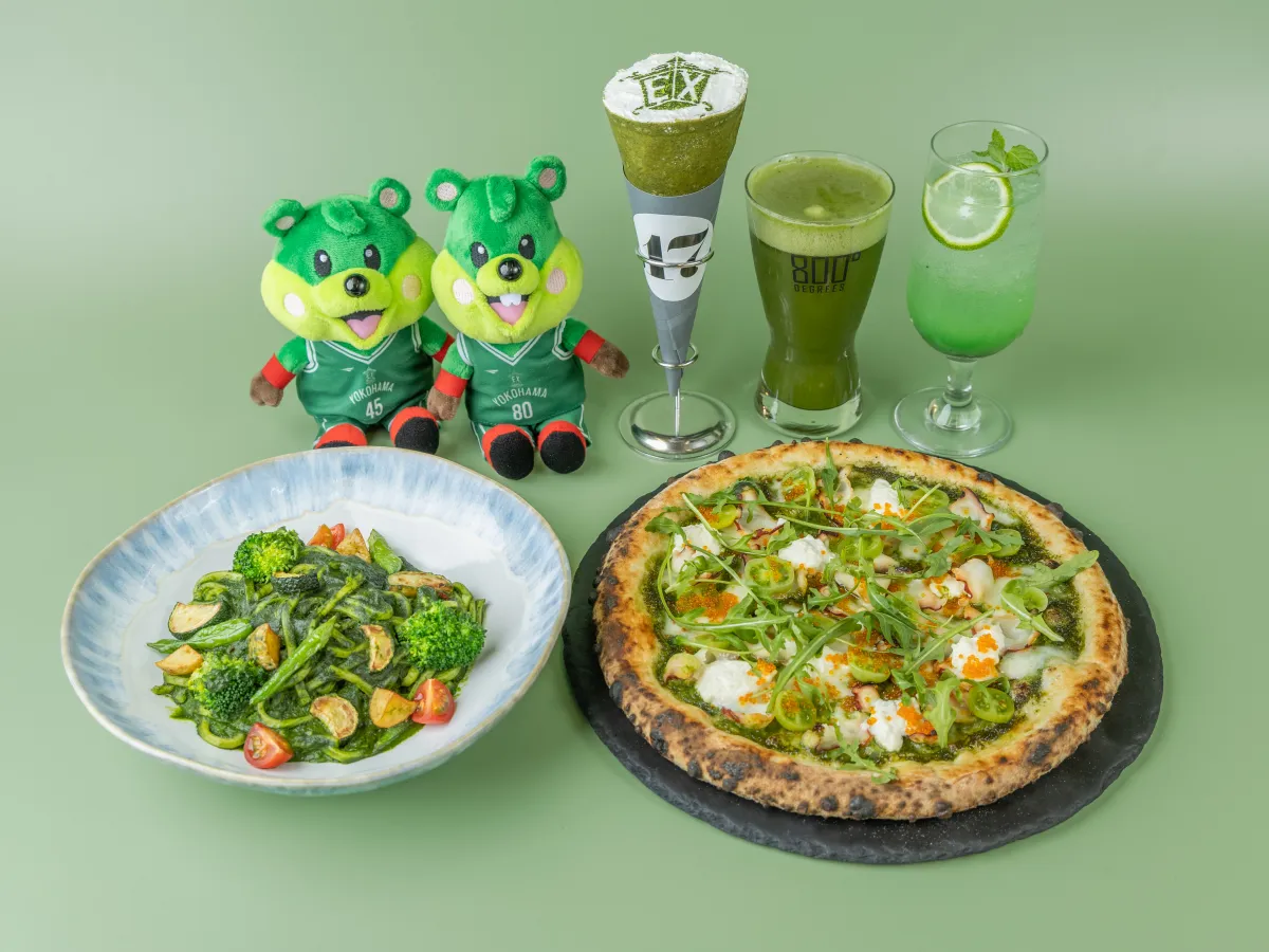 このピザは、チームカラーのグリーンをバジルのベースで表現し、オレンジのとびっこをトッピング。燻製した佐島のタコと、プチプチした食感のとびっこが絶妙なハーモニーを生み出しています。ディナータイム限定で楽しめる一品、価格は3,400円(税込)です。