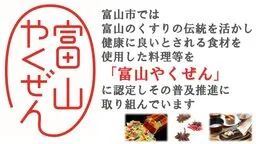 「富山やくぜん」は、富山の薬の文化を活かした観光資源としても注目されています。古来からヘルシーな食材とされてきたものを用い、食事を通して地域の伝統と健康的なライフスタイルを広めることを目指しています。他地域でも注目されるよう、認定を受けた料理は観光客にも人気です。