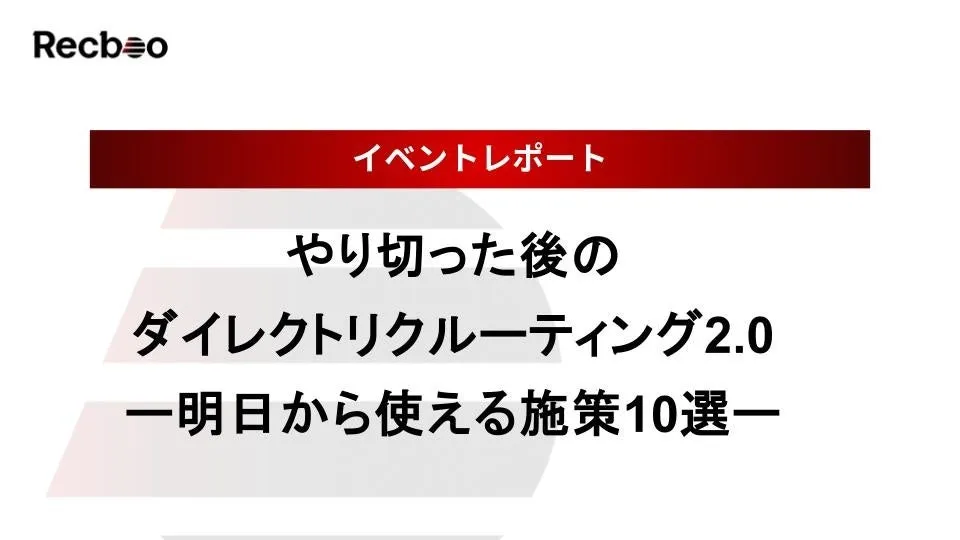 『Recboo』が主催した「やり切った後のダイレクトリクルーティング2.0」セミナーは、多くの採用担当者に新たな手法と視点を提供する貴重な機会となりました。参加者は実践的な知識を得て、採用活動に新たなアプローチができるようになったのではないでしょうか。今後もこのような支援を通じて、より良い採用環境の整備に貢献していくことを期待しています。