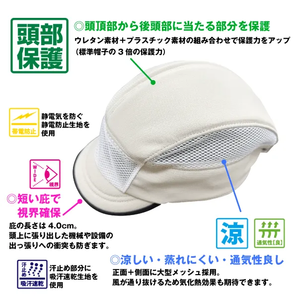 優れた突刺抵抗性:標準の作業帽子の約3倍の突刺抵抗力を持ち、頭部をしっかりと保護します。