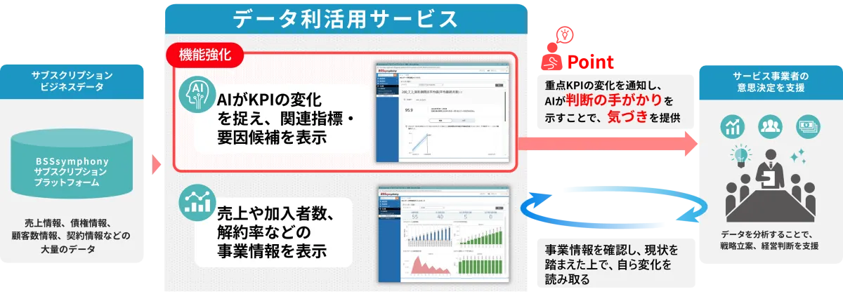 株式会社日立ソリューションズは、サブスクリプションビジネスの促進を目的とした新たなAI機能を導入しました。この機能により、顧客管理や決済などを一元管理できるクラウドサービス「BSSsymphony」がさらなる進化を遂げ、KPI(重要業績評価指標)の変化をいち早く捉え、事業の意思決定を支援します。