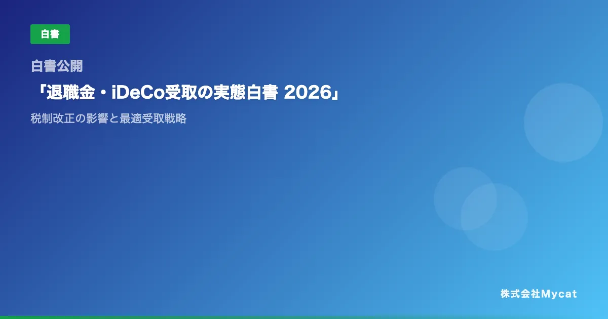 株式会社Mycatが公開した「退職金・iDeCo受取の実態白書 2026」は、退職金やiDeCoの受取方法における制度の現状と、2026年の税制改正の影響を詳しく分析した資料です。この白書は全34ページから構成され、退職金やiDeCoの受取状況をデータに基づいて整理し、それぞれの受取方法が手取り額にどのように影響を及ぼすのかを探ります。