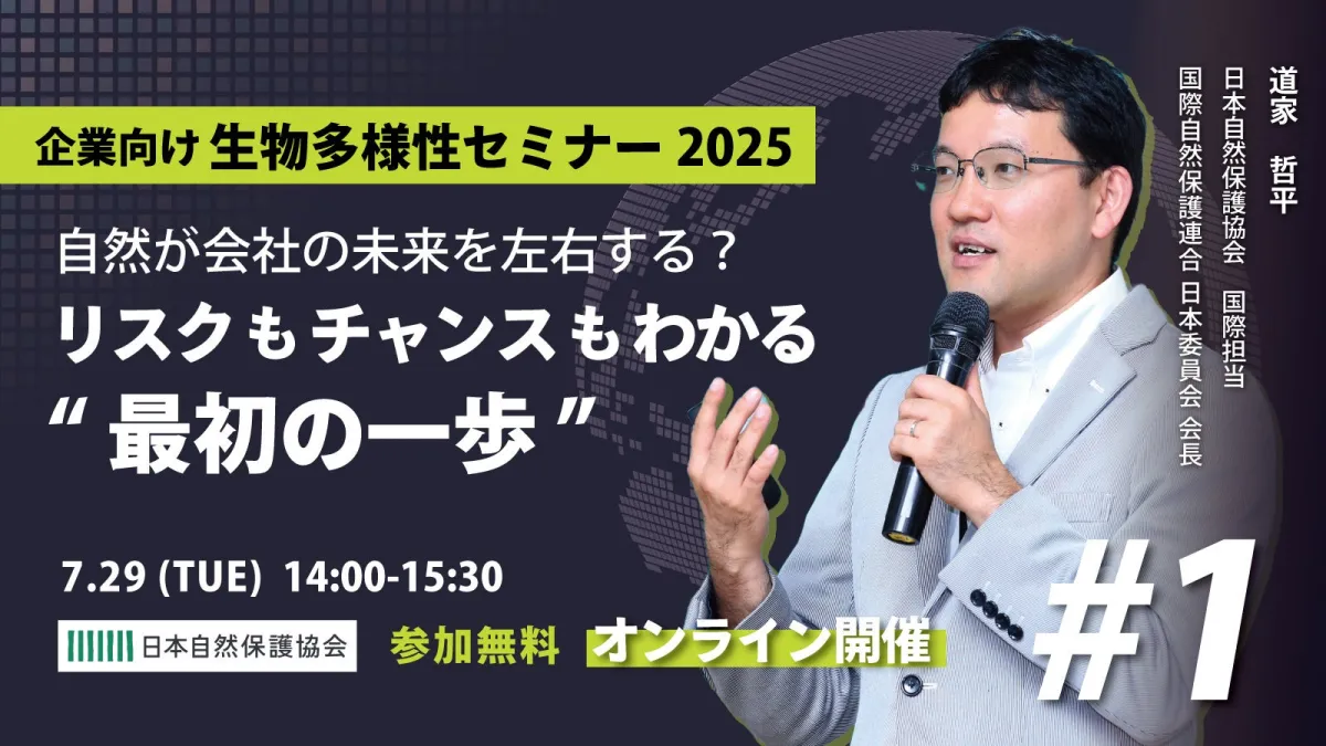 企業が今後のビジネスにおいて自然環境への配慮をどのように取り入れるかが問われている時代。2025年7月29日(火)、公益財団法人日本自然保護協会による「企業向け生物多様性セミナー2025」第1回がオンラインで開催されます。このセミナーは、企業のサスティナビリティ担当者に向けた内容で、自然保護や再生への取り組みを実践するための第一歩を示すことを目的としています。