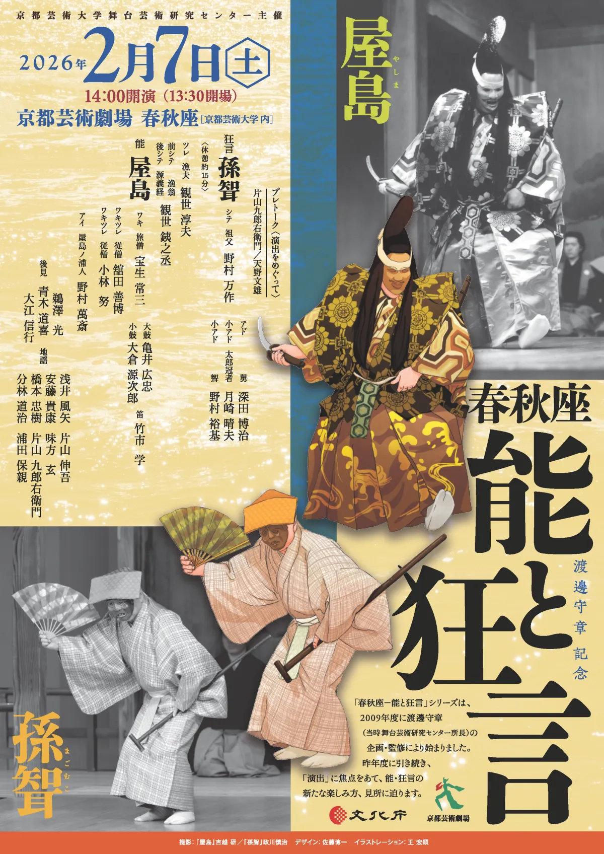 2026年2月、京都芸術大学内の春秋座で、毎年恒例の能と狂言の公演が開催されます。作品は、能『屋島』と狂言『孫聟』で、出演には名だたる役者たちが揃い、期待が高まります。今回の公演は、伝統的な日本の文化を継承し、後世に伝えることを目的とした「劇場能」の一環として位置付けられています。