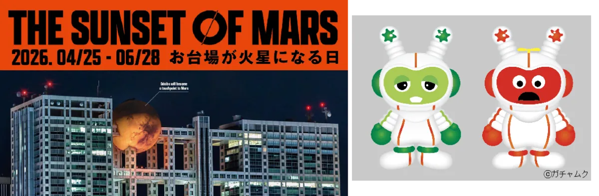 イベント会場では、火星の鉱物を元に誕生したオリジナルキャラクターが登場します。また、フジテレビ限定でガチャピンとムックも火星衣装に身を包んで参加。来場者はこのキャラクター達とともに、火星の探査を楽しむことができるかもしれません。そして、会場限定のオリジナルカプセルトイグッズも販売され、火星旅行の思い出を形に残せるアイテムが揃っています。
