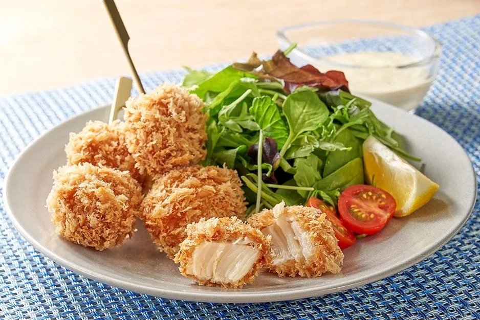 北海道オホーツク海で育まれるホタテは、流氷が運ぶ豊かなプランクトンを栄養源とし、甘みが引き立つ食材として知られています。このホタテが、まい泉独自のオリジナルパン粉をまとい、カラッと揚げられて串刺しにされています。手軽に楽しめるスタイルは、家族や友人との集まりにも最適です。