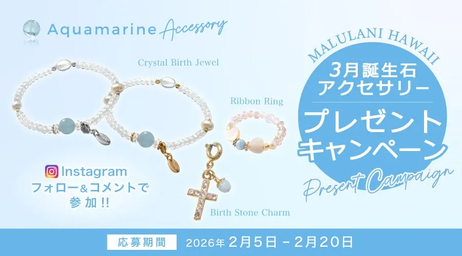 ハワイ発の天然石アクセサリーブランド「マルラニハワイ」が、実施する特別キャンペーンは、今が旬の「アクアマリン」をテーマにしたアクセサリーを対象にしており、当選者にはその魅力的なアイテムが贈られます。このキャンペーンは、2026年2月5日から2月20日までの期間中に行われます。