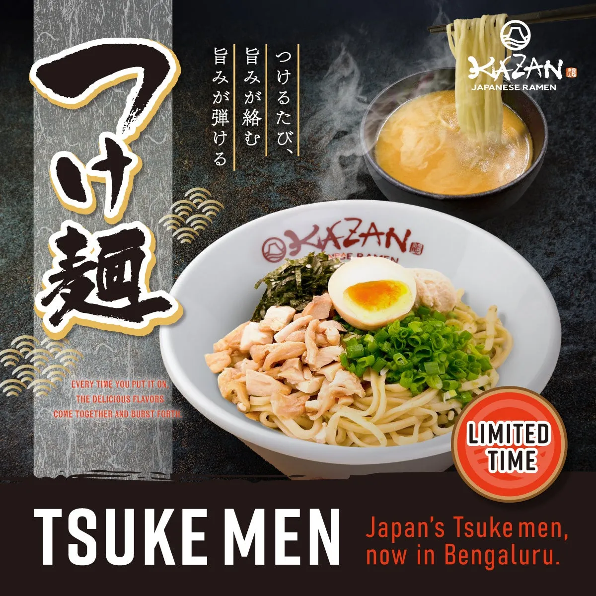 2月1日からは毎日数量限定で提供されるつけ麺が新しくグランドメニューに追加されます。多くの顧客から継続して提供を望む声が集まったため、特別な製麺技術を活かしながら数量限定での販売が行われます。インドでは味わうことのできなかった本格的な日本のつけ麺をぜひ『KAZAN JAPANESE RAMEN』でお楽しみください。