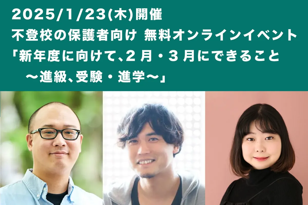 2025年1月23日(木)、不登校のお子さんを持つ保護者の皆さんに向けた、無料オンライン講座が開催されます。本イベントでは、不登校に関する悩みや進学などのサポートを提供します。テーマは「新年度に向けて、2月・3月にできること〜進級、受験・進学〜」。これからの時期にお子さんの進級や受験の準備について、どのように取り組めば良いのかを一緒に考えていく機会です。
