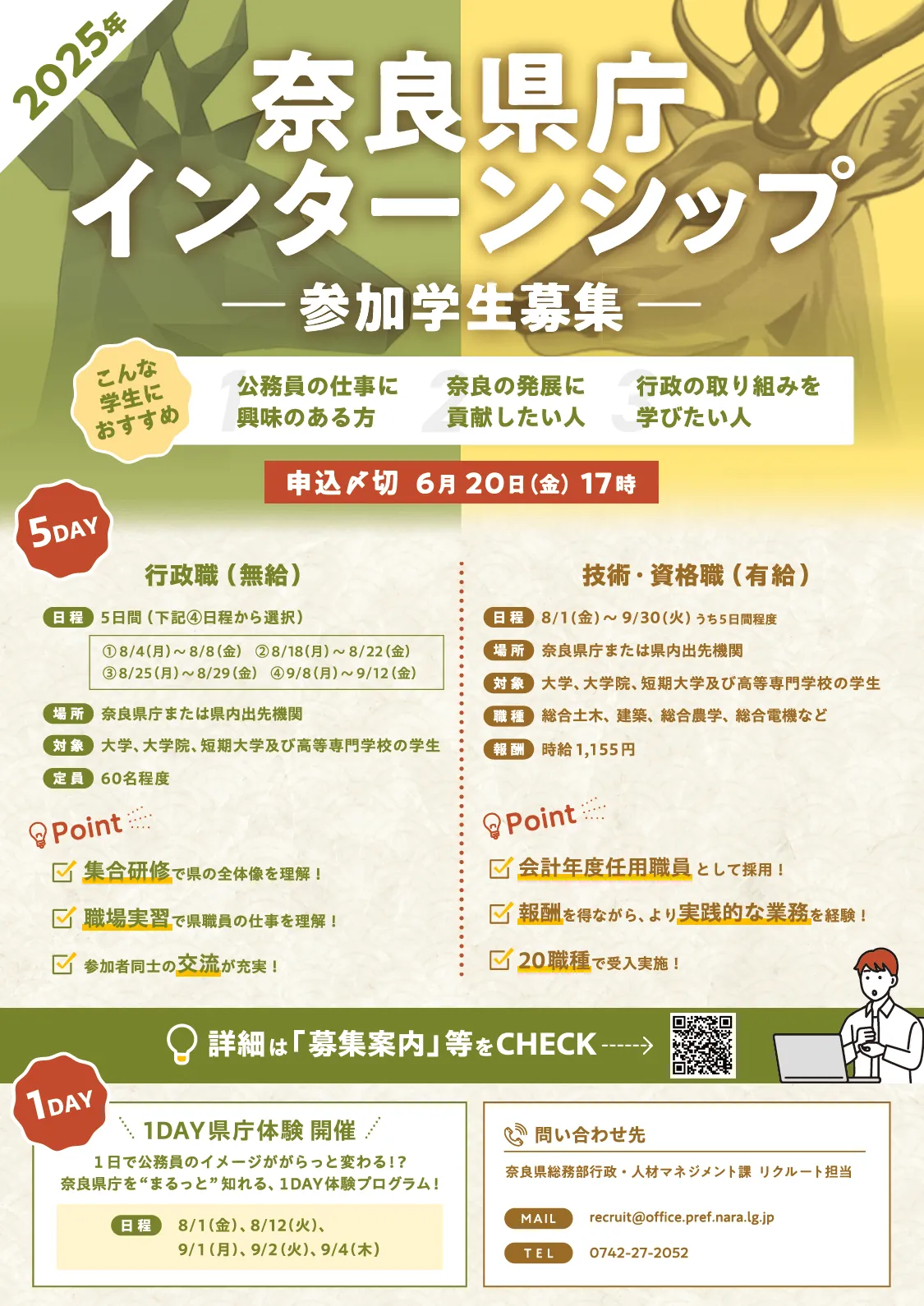 奈良県庁でのこの素晴らしい機会を活かし、将来に向けたスキルや経験を積み重ねましょう。夏に奈良県庁でお会いできることを楽しみにしています!