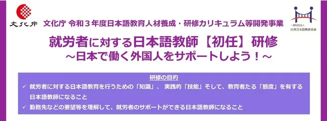 そこで、文化庁から委託を受けて行われる「就労者に対する日本語教師【初任】研修」が注目されています。本研修では、これから日本語を教える教師を対象に、日本で働く外国人就労者の多様性や課題を理解し、効果的な指導方法を学ぶことが目的です。