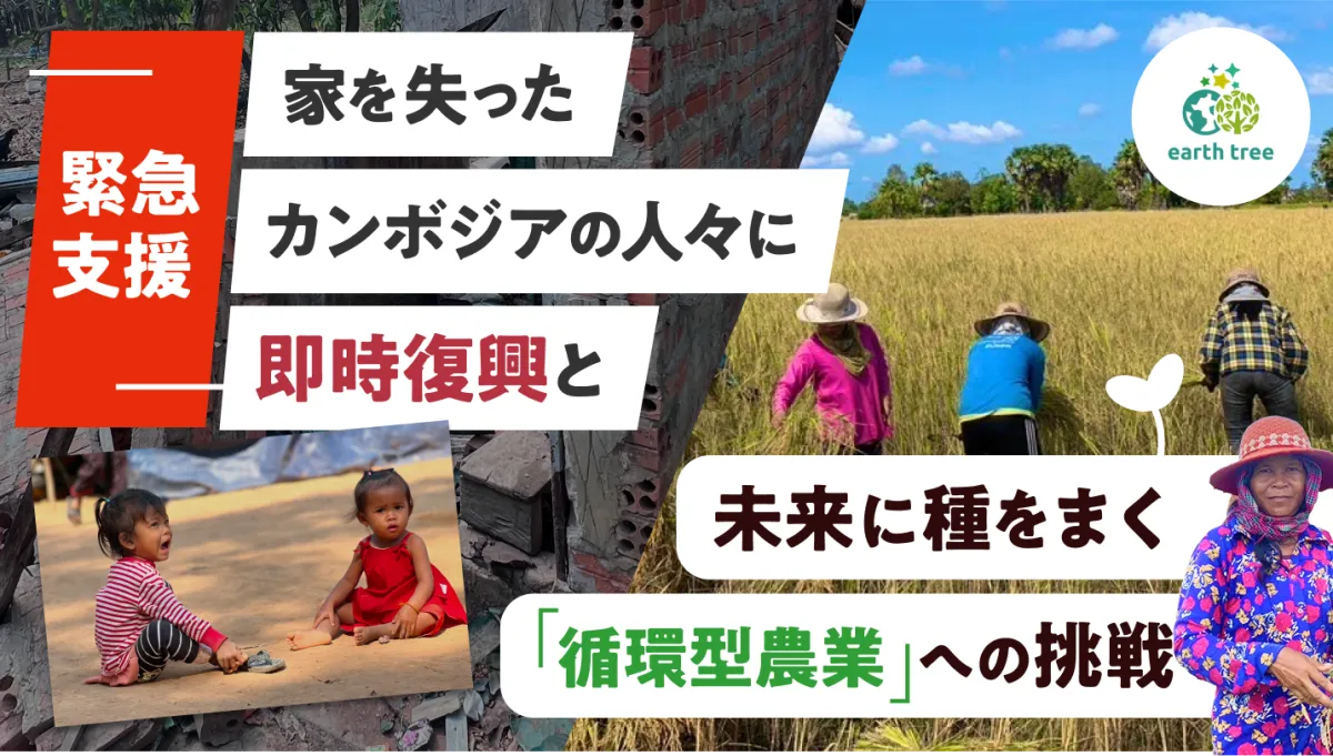 NPO法人earth treeは、現在カンボジアで緊急支援と未来を見据えた農業モデルを確立する取り組みを進めています。タイとの国境紛争によって家を失った人々への支援と、持続可能な農業の発展を目指しています。これらの活動を通じて、誰もが誇りを持って生きられる未来を築いていく姿勢が、私たちの支援の核となっているのです。