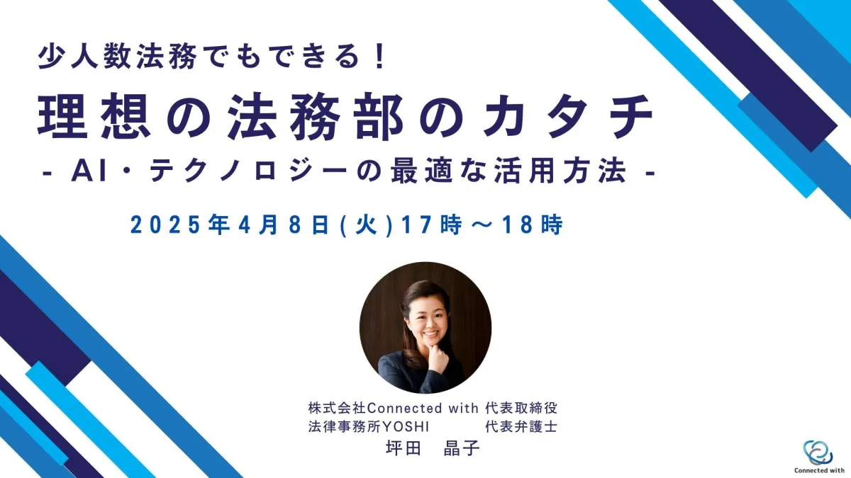 - - 講師:坪田晶子(株式会社Connected with・代表取締役、法律事務所YOSHI・代表弁護士)