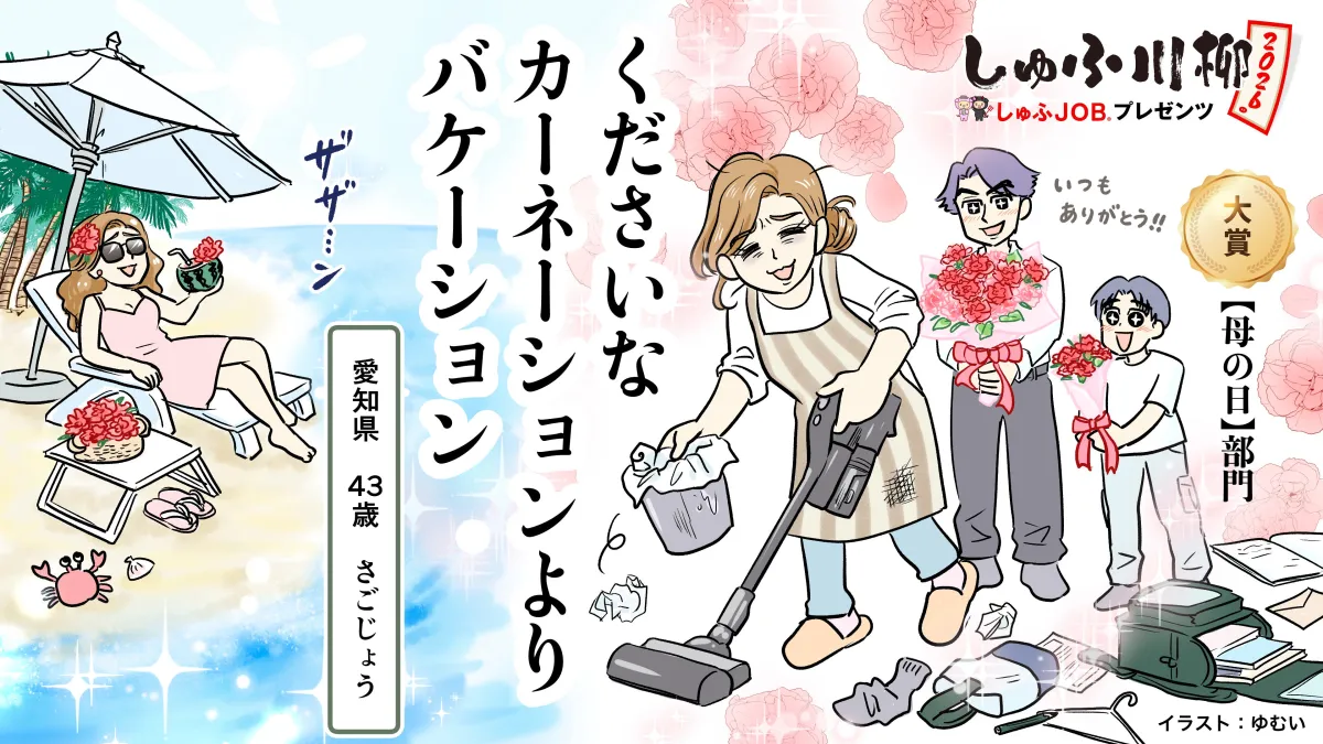 「しゅふ川柳2026」に寄せられた句からも、母たちの本音が見えてきました。たくさんの句に「カーネーションよりもバケーション」というフレーズが見られ、物ではなく休息を求めているという現実が反映されています。傾向としては、休むことや自分のための時間を求める声が強く、これが母の日に対する理解を広げているかもしれません。