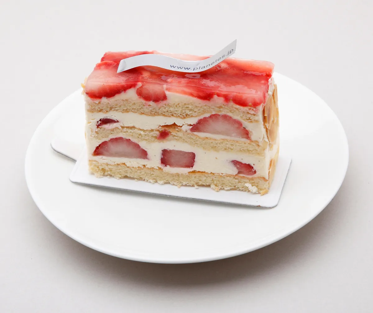 続いて、同じく地下1階の<パティシェリア>からは[パティスリー プラネッツ]が手がけるトランシュフレイズ(810円)が注目。アーモンドスポンジとムスリーヌバタークリーム、そして新鮮ないちごを重ねたフレジエスタイルのケーキが、特定の日に販売される予定です。このスウィーツは、いちご好きにはたまらない一品です。