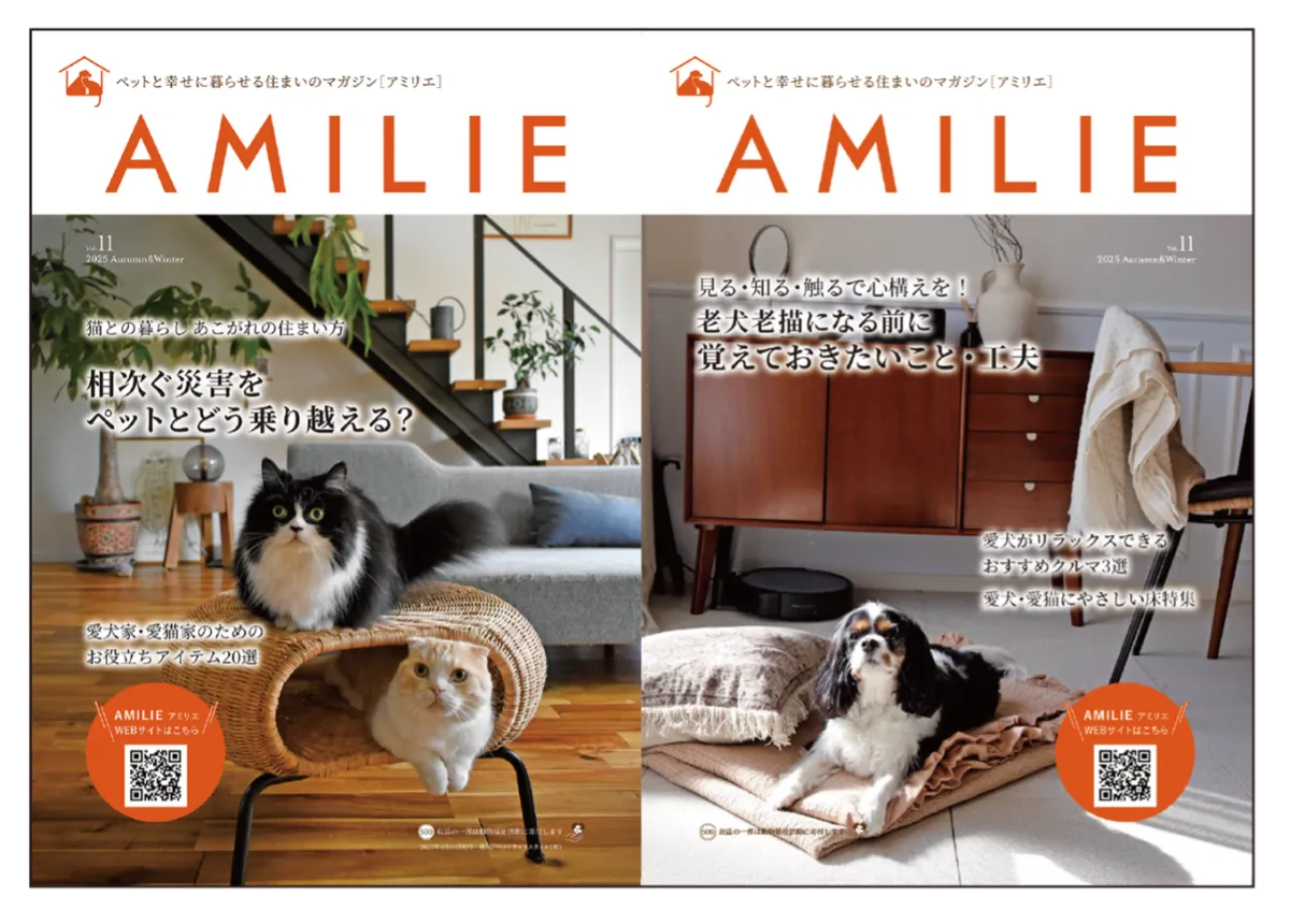 愛犬や愛猫と快適に暮らすための情報を提供するライフスタイルマガジン「AMILIE(アミリエ)」の最新号が、2025年9月30日に発刊されました。本誌は、ペットと幸せな暮らしを望む飼い主に向けた確かなサポートを重視しています。ペット愛好者向けに特化した雑誌として、年2回、春と秋に発行されており、累計発行部数は約60万部に達しています。