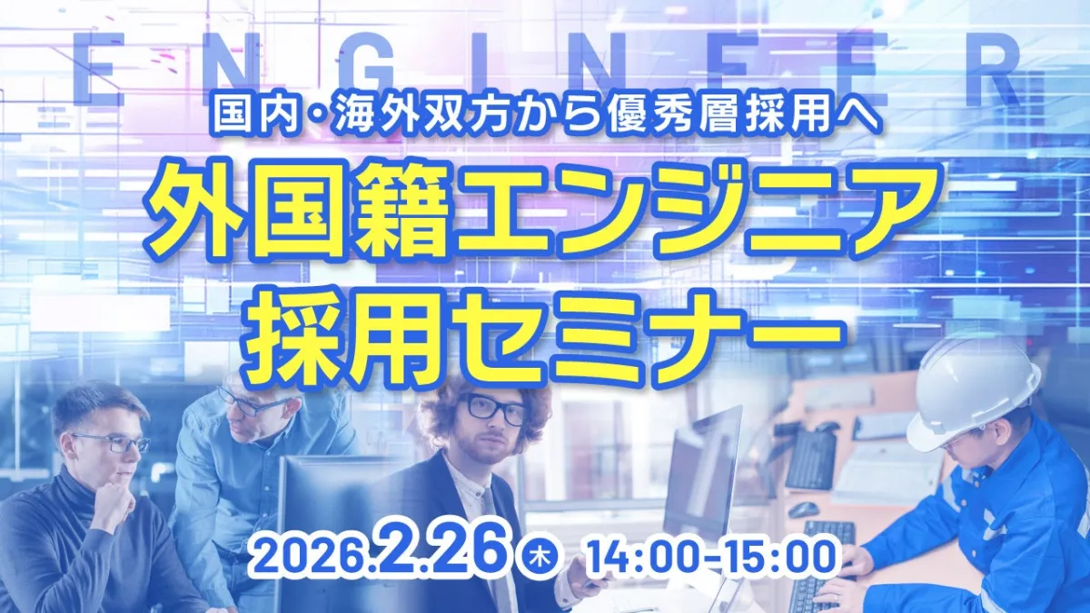 2026年2月26日(木)に、株式会社天職市場が主催するオンラインセミナー「国内・海外双方から優秀層採用へ外国籍エンジニア採用セミナー」を開催します。本イベントは、外国人材の採用に取り組む企業の皆様に向けた貴重な機会です。