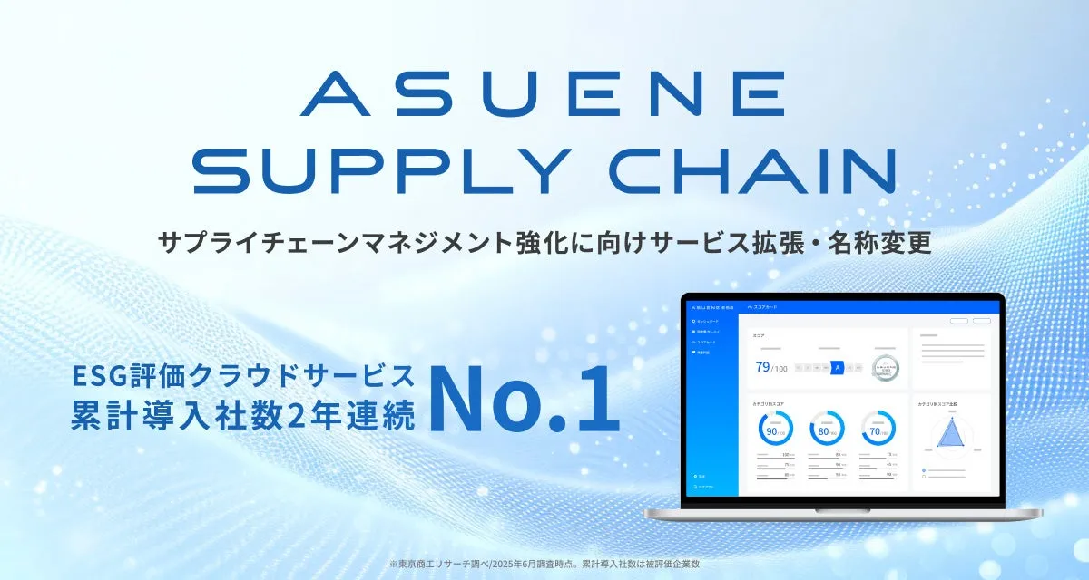 この記念すべき成果を受けて、アスエネは2025年10月1日より「ASUENE ESG」を拡張し、新しい名称「ASUENE SUPPLY CHAIN」に変更することを発表しました。この新たなプラットフォームは、企業がサプライチェーンを一元管理し、複雑化した状況に対応できるように設計されています。
