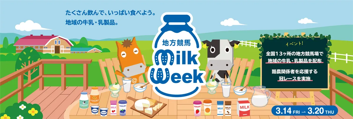 2025年3月14日から3月20日までの間、全国の地方競馬場で「地方競馬ミルクウィーク2025」が開催されます。このイベントは馬事畜産振興協議会の主催で、昨年に引き続き、地方競馬全国協会の支援を受けて実施されます。の目的は、牛乳や乳製品の消費拡大と、日本の酪農業を応援することにあります。
