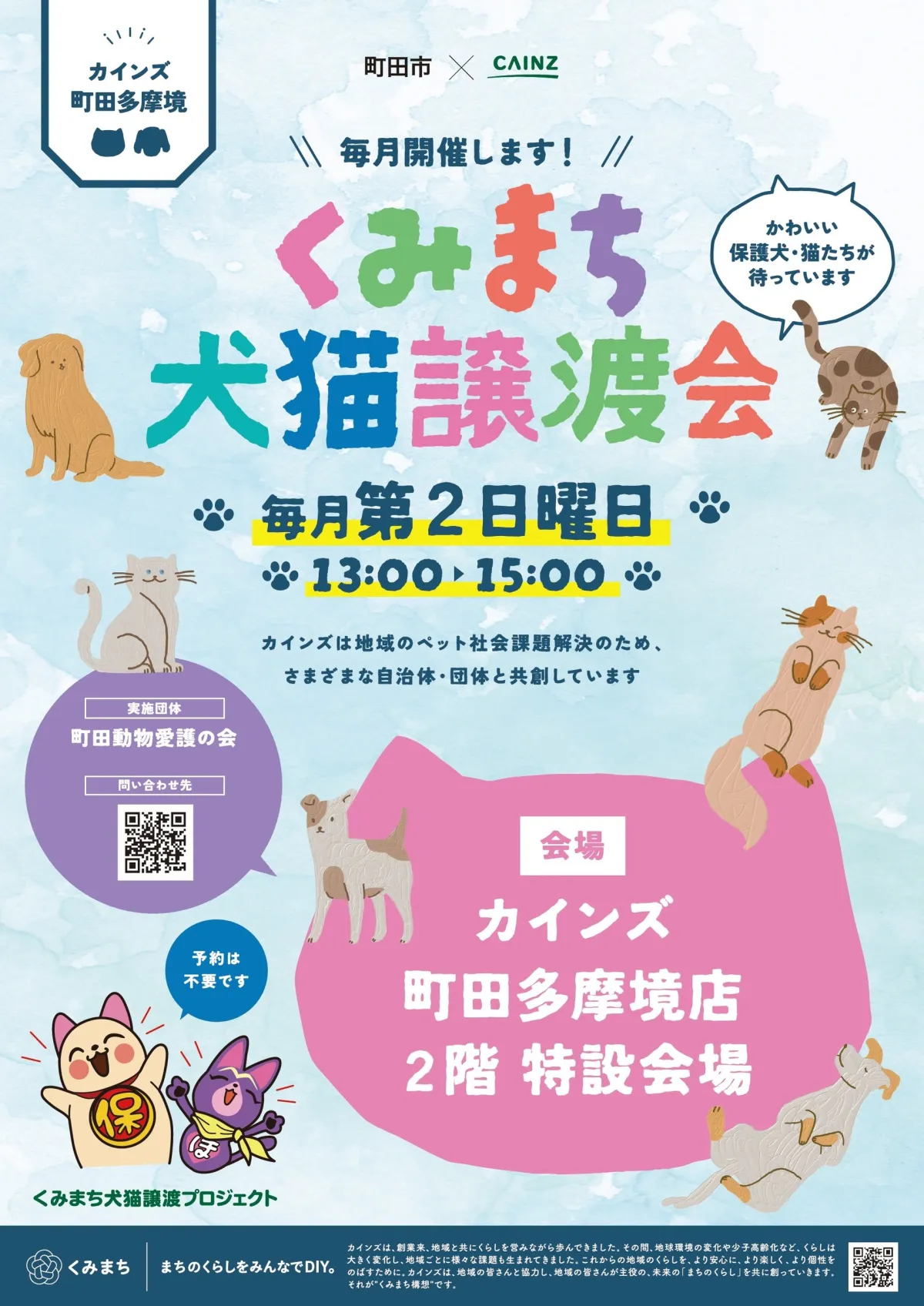 町田市は、カインズ株式会社と連携して「くみまち犬猫譲渡プロジェクト」を進めており、その中で譲渡会が定期開催される運びとなりました。カインズは、地域貢献活動にも力を入れており、動物福祉の向上に寄与する取り組みを精力的に行っています。