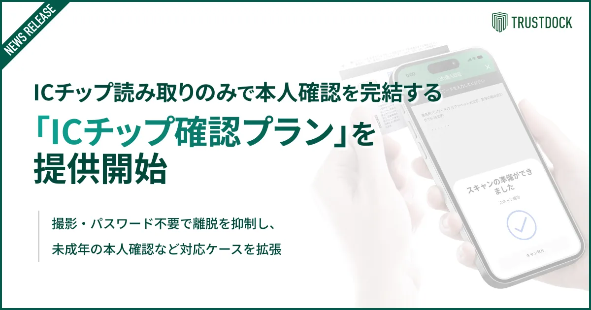 株式会社TRUSTDOCKが、本人確認をよりスムーズに行うための新サービス「ICチップ確認プラン」を発表しました。このプランでは、ICチップに埋め込まれた情報を読み取ることで、セルフィーやパスワードの入力を省略し、ユーザーの負担を軽減することを目指しています。
