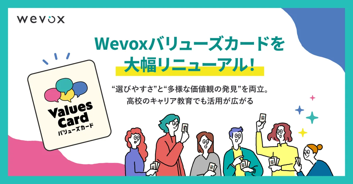 株式会社アトラエが手掛ける組織力向上プラットフォーム「Wevox(ウィボックス)」が、対話を促進するカードゲーム「Wevoxバリューズカード」をリニューアルしました。このカードゲームは、チームやクラスでの価値観を言語化し、相互理解を深めるための強力な対話ツールとして、多くの現場で広く活用されてきました。累計販売数1万個を超え、オンライン版は12万人以上が使用しており、その効果が実証されています。