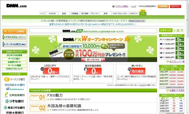 2009年7月17日、株式会社DMM.com証券が提供する、革新的な外国為替証拠金取引サービス『DMM FX』がついにサービス開始となりました。これに伴い、最大100万円相当のDMMギフト券がもらえる大規模キャンペーンも展開されています。