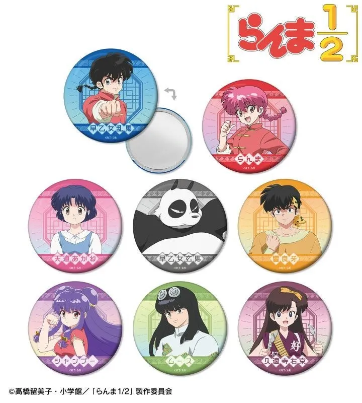 まずご紹介するのはトレーディング缶ミラー。早乙女乱馬や天道あかねなどのキャラクターのイラストが描かれた缶ミラーは、見た目だけでなく機能性も兼ね備えています。サイズは直径約76mmで、持ち運びも便利。カバンに入れても場所を取らず、日常使いに最適です。価格は単品が770円(税込)、全8種類が揃うBOXセットが6,160円(税込)で購入可能です。