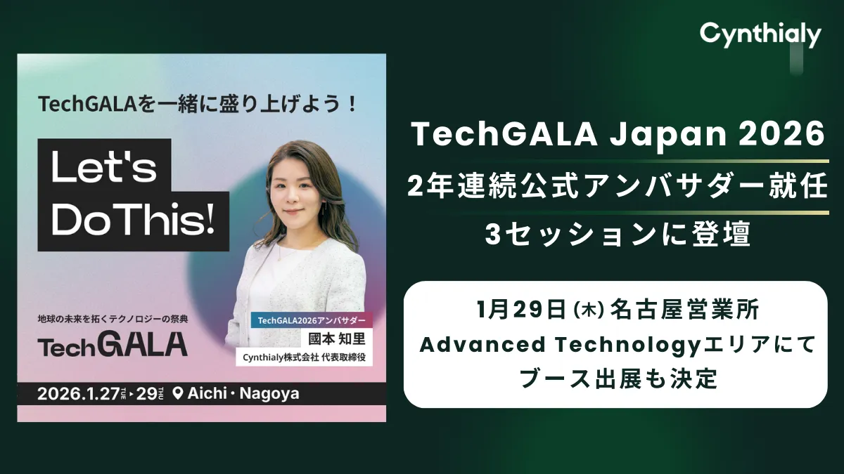Cynthialy(シンシアリー)株式会社の代表取締役である國本知里氏が、2026年に開催される「TechGALA Japan 2026」のアンバサダーとして就任し、セッションにも登壇することが発表されました。これは、彼が昨年に続いて2年連続の就任となり、生成AIの普及を目指した活動がさらに強化されることを意味しています。