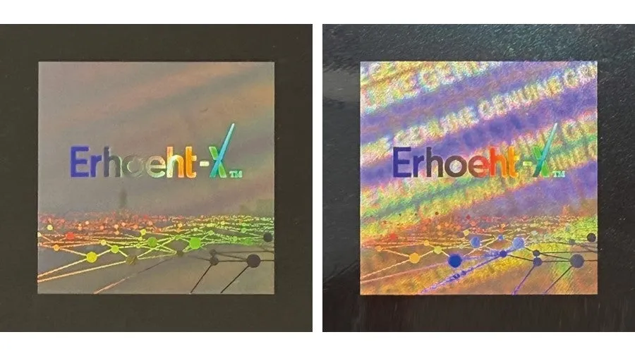 2022年6月に初めて登場した「イルミグラム®」は、従来のホログラムよりも優れた耐偽造性を備え、誰にでもわかりやすい真贋判定が可能です。このカラー版は、単色から複数色の潜像を表現できる特徴を持ち、複数色を利用することで偽造品や模倣品の流通を効果的に防ぎます。