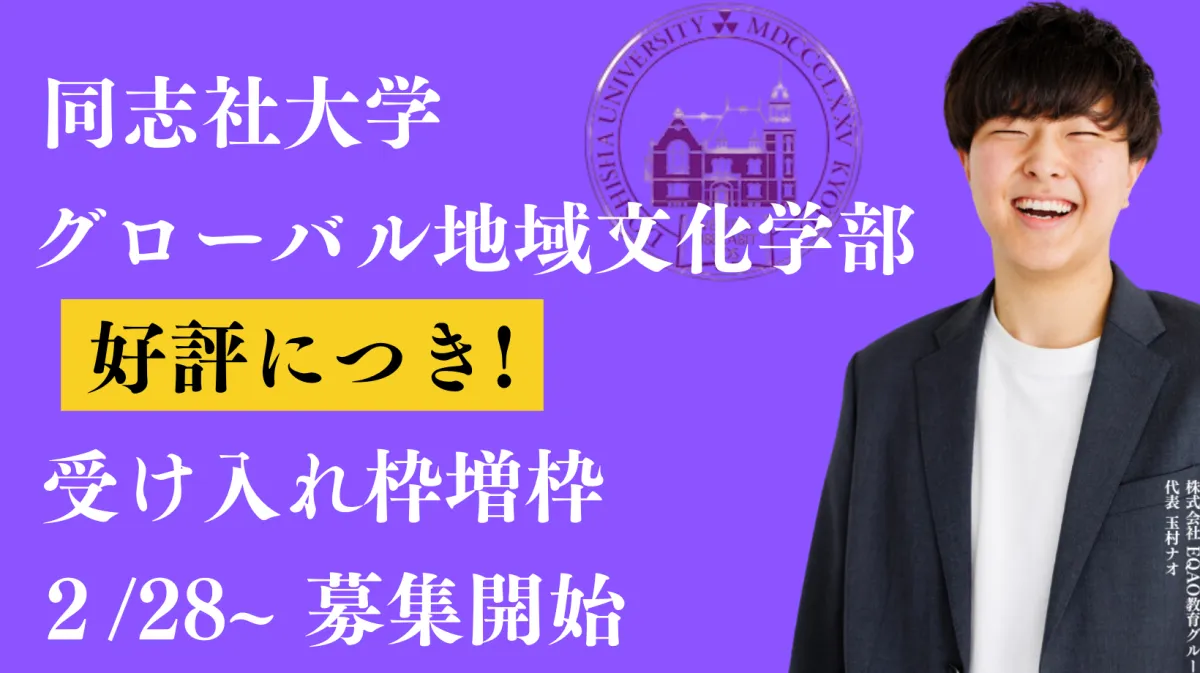 近年、同志社大学のグローバル地域文化学部では、より多くの学生を受け入れるために特別クラスの増設が決定しました。このクラスでは、国際性を重視し、世界中のさまざまな文化を理解し、影響を与える能力を養います。