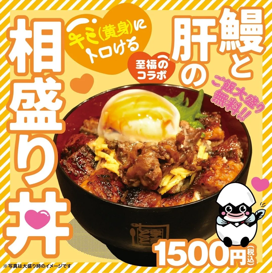 幸せを感じるご褒美丼「キミにとろける鰻と肝の相盛り丼」