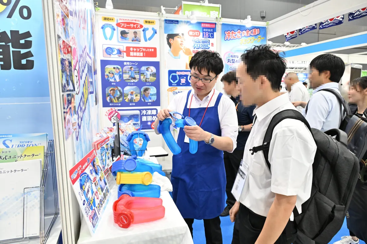 会場内は、製造や建設、物流などの現場向けに開発された業務用の「大型冷風機」や「ウェアラブルデバイス」が注目の的。さらに、「空調機能付き衣類」や「水の循環で身体を冷やす衣類」、「ペルチェ素子を用いた電子冷却グッズ」といった、一般生活に役立つ暑さ対策グッズの展示が前回以上に増加しました。