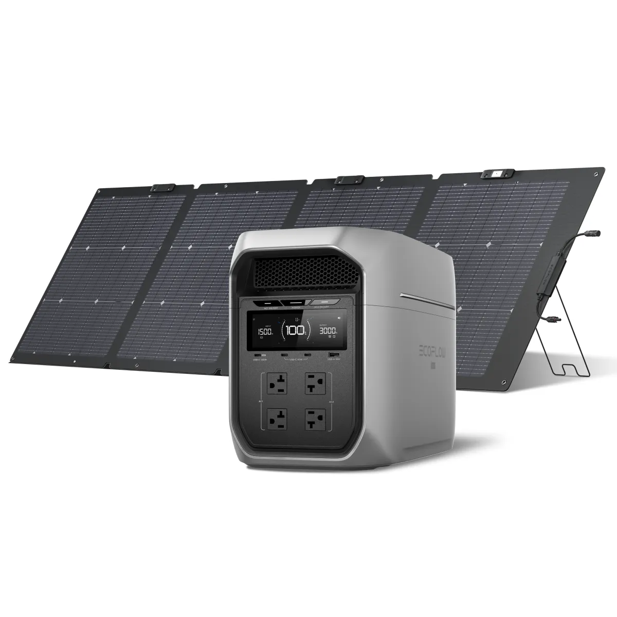 「DELTA 3 Max Plus」は、220Wソーラーパネルとのセットで319,280円(税込)が175,604円(税込)、容量2048Whを誇り、3000Wの高出力を実現した先進モデルです。この製品は業界初のAC出力分割コントロール機能で、効率的な電力管理が可能となっています。