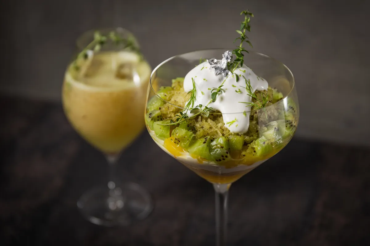 2025年7月、リメイクイージーでは、『沖縄パインとキウイのハーバルグラニテパフェ』を期間限定で提供します。この特製パフェは、沖縄産の甘いパイナップル「ゴールドバレル」をメインに使用。ジンやハーブ、ライムを組み合わせ、豊かな香りと新鮮な味わいを楽しむことができます。さらに、ココナッツムースが加わることで、クリーミーさもプラスされています。初夏の季節にぴったりの、爽やかで香り豊かなパフェです。