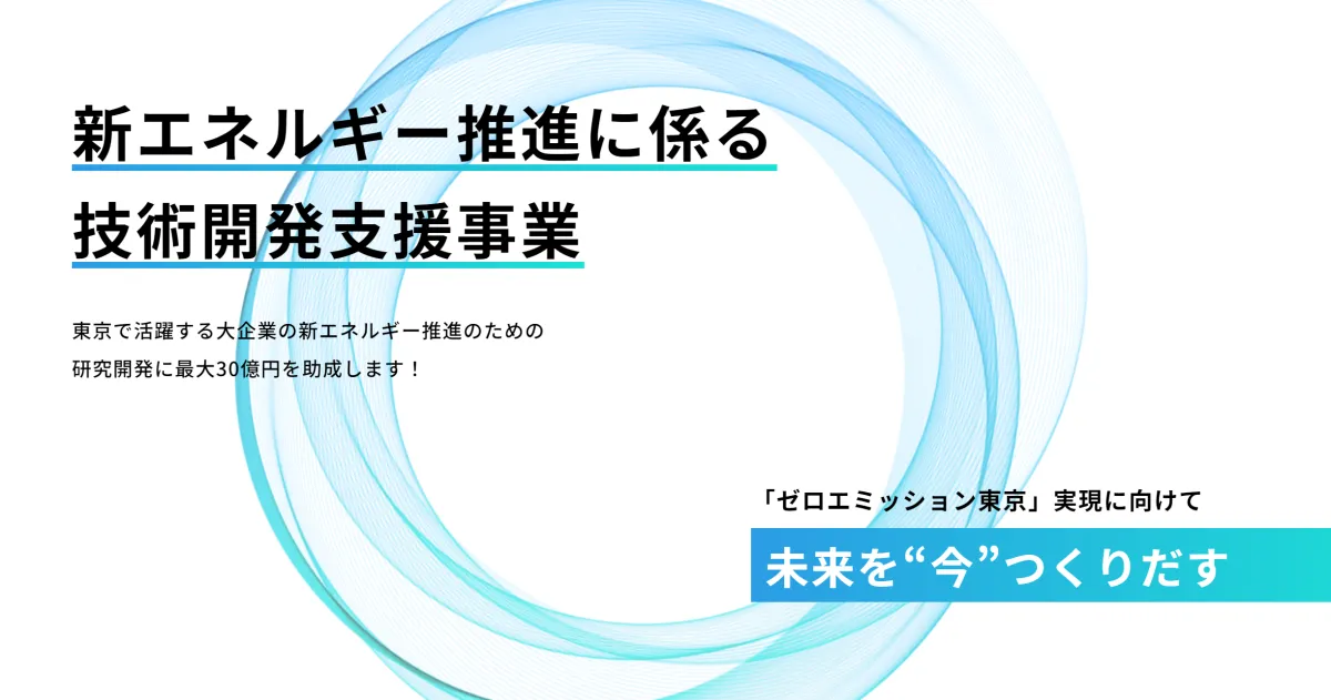東京都及び公益財団法人東京都環境公社は、この事業を通じて新エネルギーの普及と利活用を進めることで、経済的にも有効なエネルギーシステムの確立を目指しています。2者以上の企業グループが一体となり、大企業と中小企業の協力による技術開発が求められています。