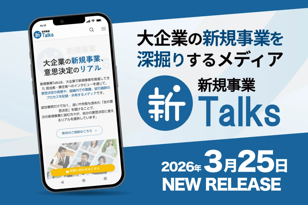 新たに正式リリースされたウェブメディア「新規事業Talks」は、株式会社堀井マーケティング事務所が運営し、大企業の新規事業担当者や事業開発責任者を対象にした情報発信の場です。日本には4,000社の上場企業が存在し、新規事業への投資を明言している企業は約1,500社に留まっています。このような状況下で多くの企業は、新たな成長領域を探求することを求められています。しかし、新規事業の成功率は低く、その挑戦を続けること自体も容易ではありません。