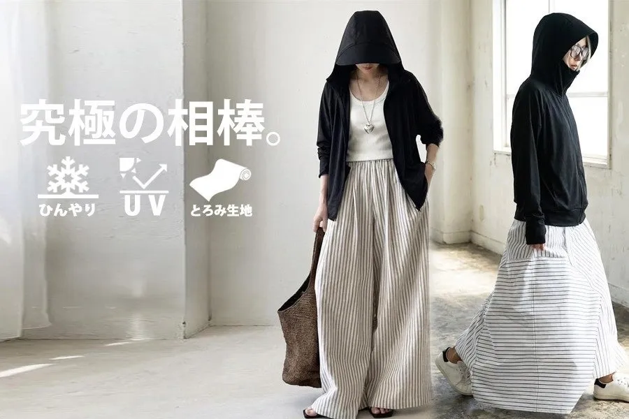 また、ラッシュガードパンツは日常使いから、ちょっとしたお買い物や散歩に最適で、選べる2サイズがあります。さらに、ゆったりとしたドルマンシルエットのラッシュガードパーカーは、多機能でありながらスタイリッシュ。シーンを選ばず活躍すること間違いなしです。