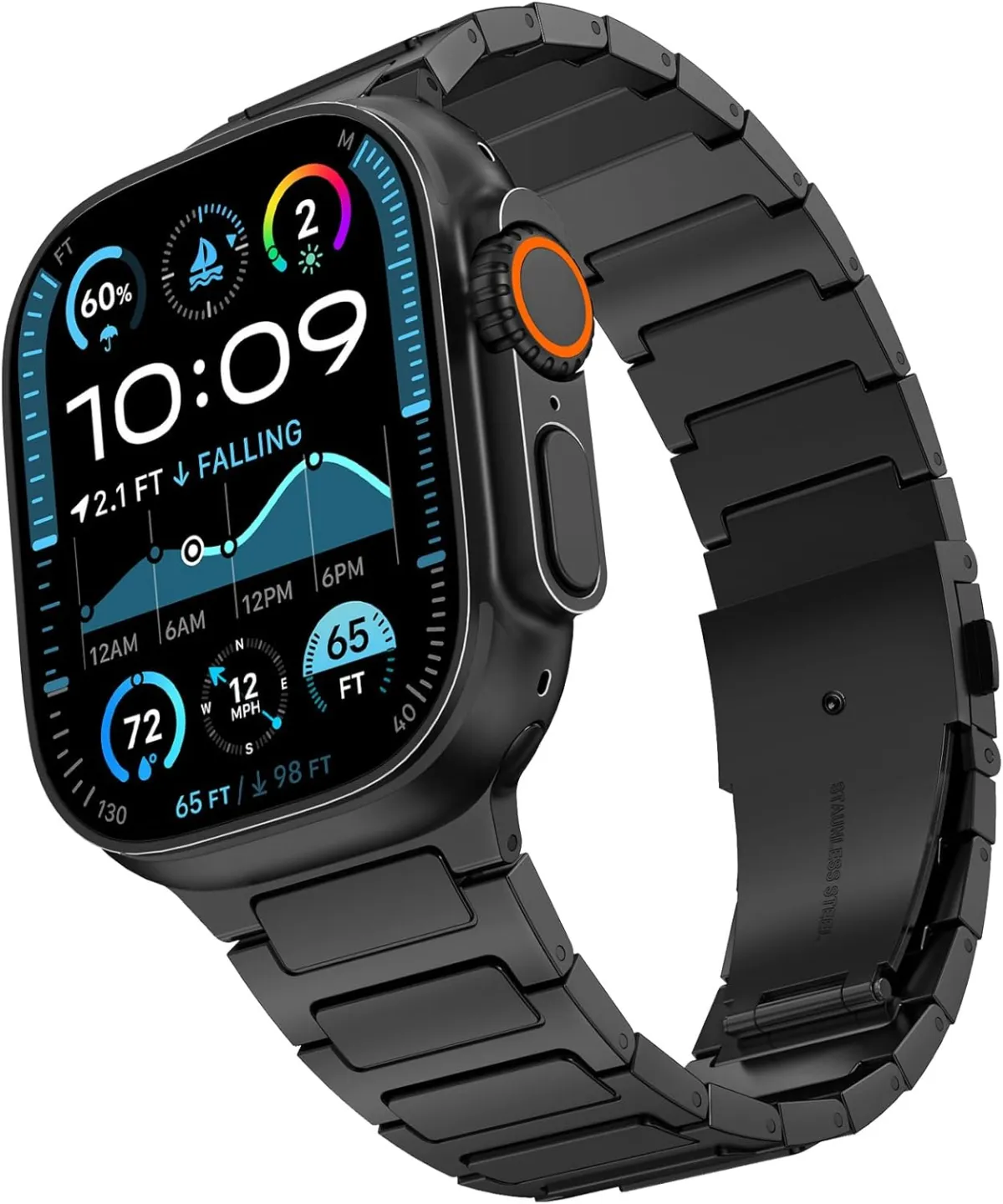 アップルウォッチのメタルベルトに対するユーザーの不満は、一般的に重さや小傷がつきやすい点でした。そこで、オンザグローバルは、チタン製のベルトを採用し、約40%の軽量化を実現。また、耐摩耗性に優れたDLC(ダイヤモンドライクコーティング)を施すことで、外観の美しさも長持ちします。