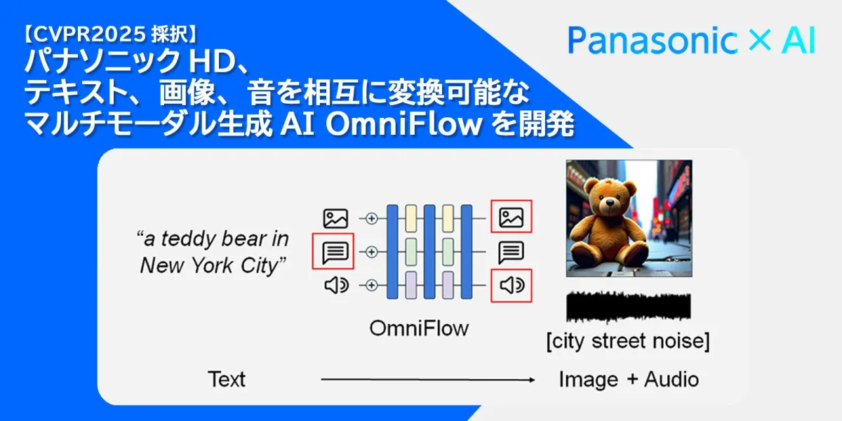 パナソニック ホールディングス株式会社とそのアメリカ拠点の研究開発部門は、カリフォルニア大学ロサンゼルス校の研究者たちと共同で、革新的なマルチモーダル生成AI「OmniFlow」を開発した。この技術は、テキスト、画像、音など異なるデータ形式を相互に変換可能であり、AI分野における重要な進展と言える。