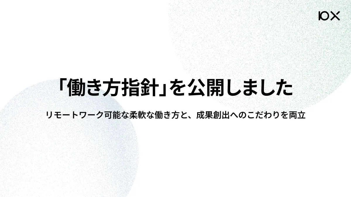 10Xはコロナウイルスの影響を受けてリモートワークの体制を整備し、リモートを基盤とした働き方「10X Workstyle」を実践してきました。2024年を見据えた事業改革の中で、全社的に成果を上げることを目指す姿勢が根付く中で、単なる「働く場所」にとどまらず、より広い視点から「働き方」のあり方を言語化する必要が生じました。これが「働き方指針」の発表に至る背景です。