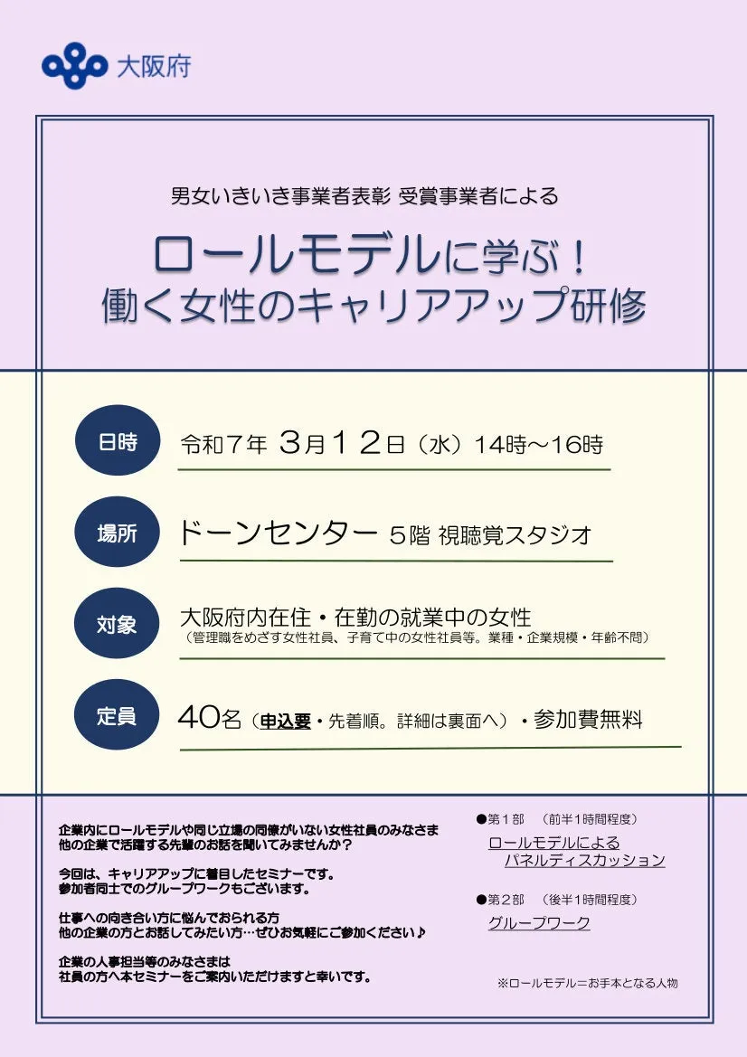 大阪府主催「ロールモデルに学ぶ!働く女性のキャリアアップ研修」
