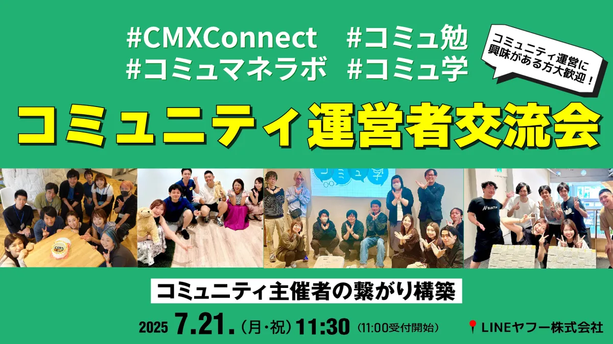 2025年7月21日、東京都千代田区にあるLINEヤフー株式会社にて、コミュニティ運営者交流会が開催されます。このイベントは、コミュニティ運営に興味のある方や既に運営している方々が一堂に会し、知識や経験を共有し、ネットワークを広げることを目的としています。