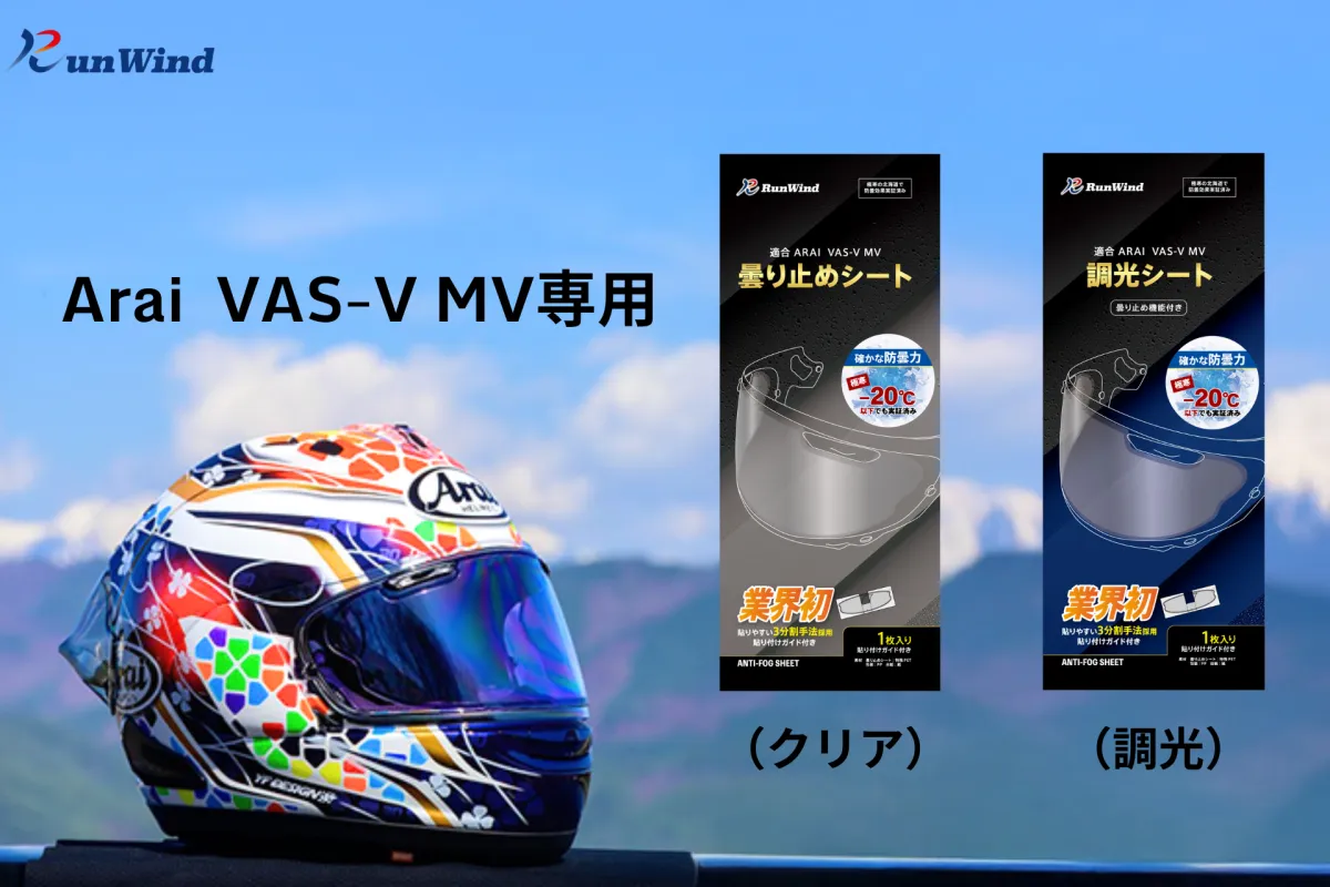 バイク愛好者の声から誕生した最新の技術「RunWind」。この曇り止め&調光シートは、特にArai VAS-V MVシールドに最適化された設計が魅力です。寒冷地での実証試験を経て、ライダーの視界を守るための万全の体制が整いました。気温がマイナス20度を下回る厳しい環境でもその性能が証明されており、さまざまな走行シーンでライダーに安心を提供します。